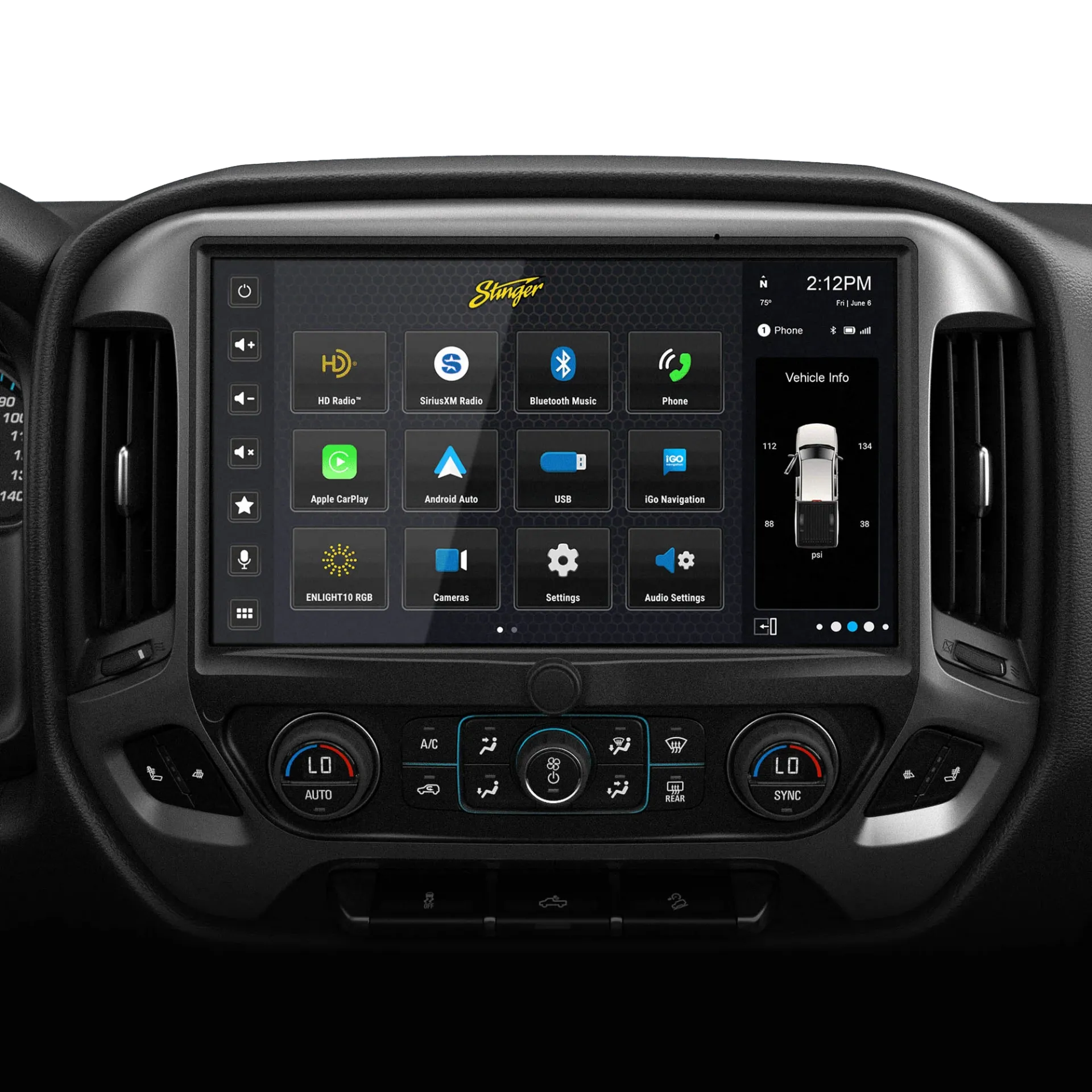 - Flexible installation options for single-DIN, double-DIN, flush mount, and angled mounting